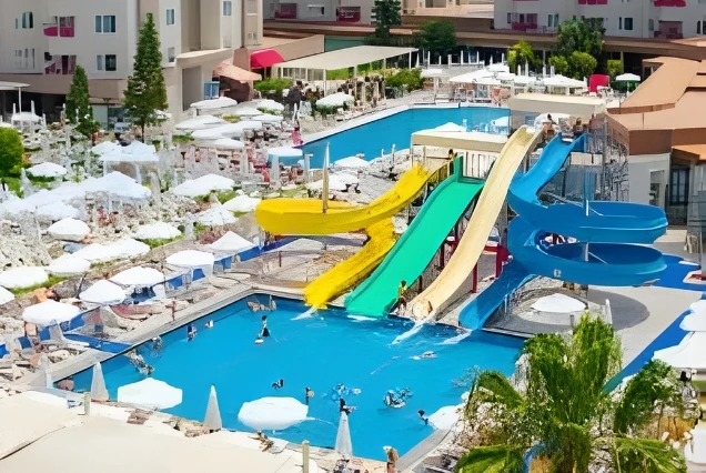 Located just a short walk from its private beach area, the hotel combines relaxing beach days with exciting poolside fun. With multiple swimming pools, aqua slides, and a welcoming family-friendly atmosphere, this package is perfect for couples, families, and group travellers seeking an affordable Mediterranean escape.